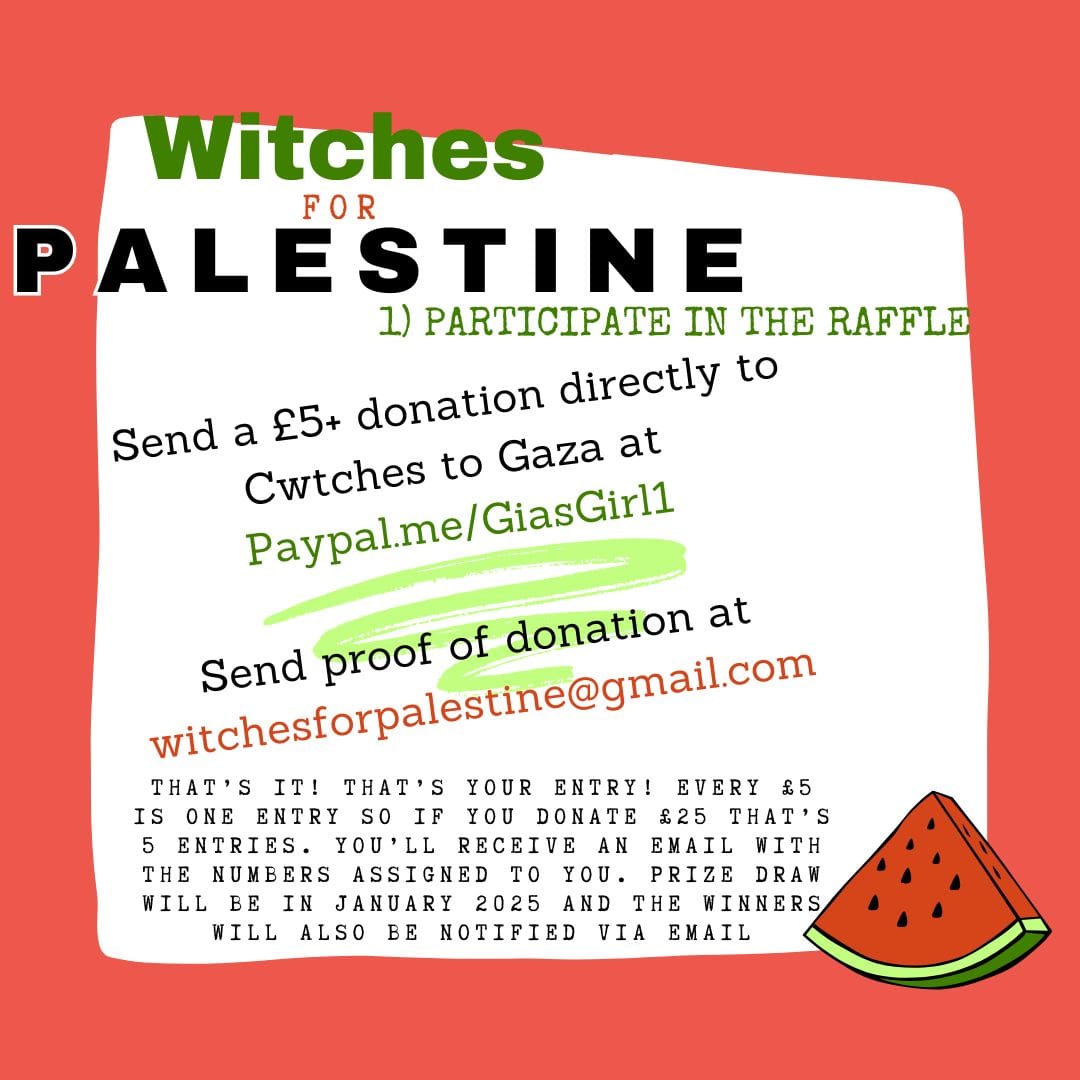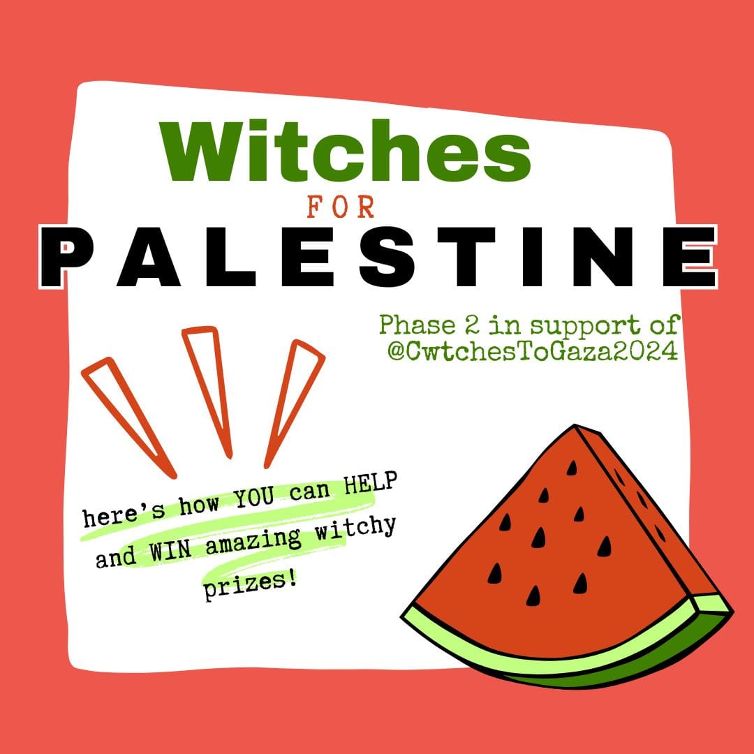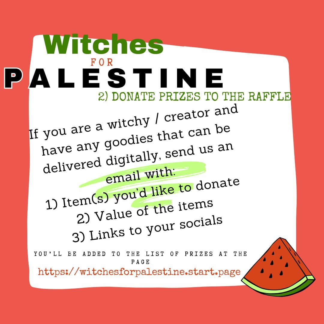 Check out the list of witches and prizes involved at https://witchesforpalestine.start.page/