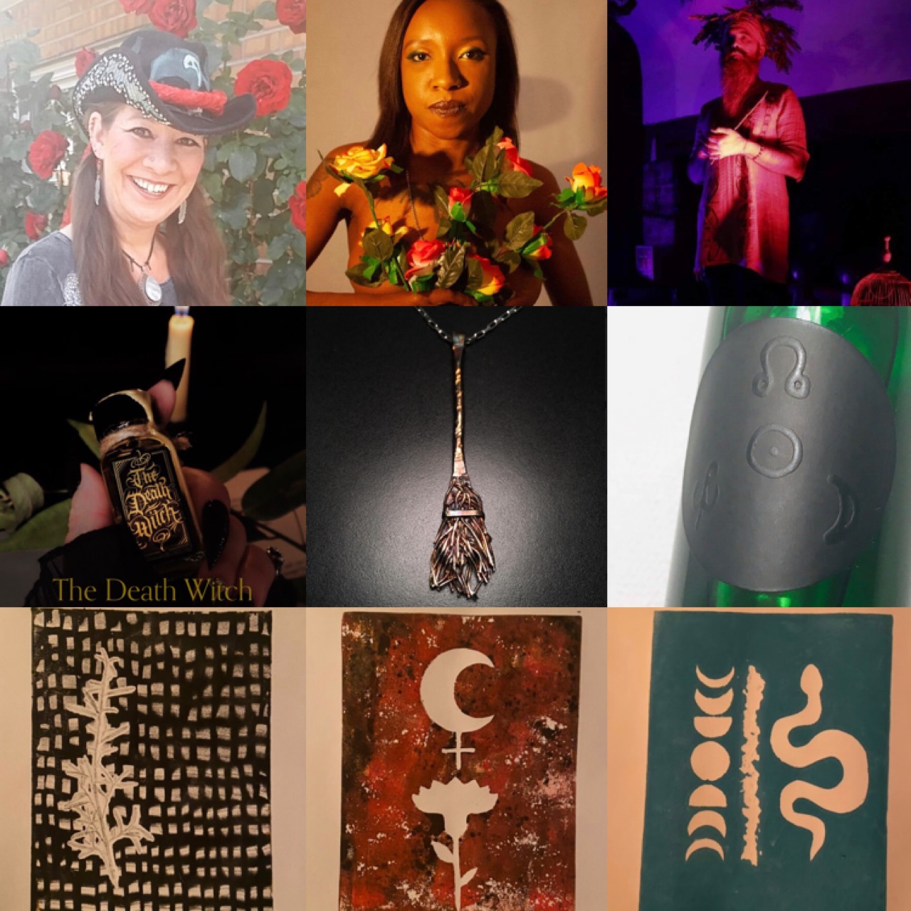 Melissa (The Salted Moon) – Witch Art Prints – The Salted Moon sells prints made on a monoprint using herbs. I make them mindfully linking colors, magickal symbols, and herbs that correspond for a specific purpose or to call in a specific energy or deity. The prints are intended to be used as you like – either one time use to aid a spell or serve as an altar cloth for a specific purpose, or it can be framed and hung to add a little magick to your home. etsy.com/shop/saltedmoonmagick