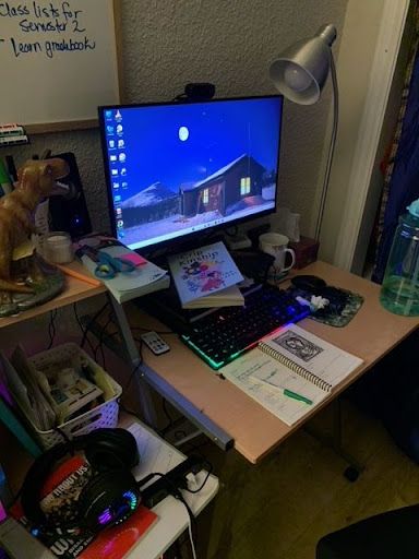 - Photo of part of Jasmins’ “work altar” in the office at home (besides the one in the classroom) - full-time PhD student, full-time teacher, part-time napper and procrastinator. :)